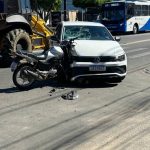 Enquanto o veículo era consumido pelas chamas, a movimentação na via seguia normalmente.