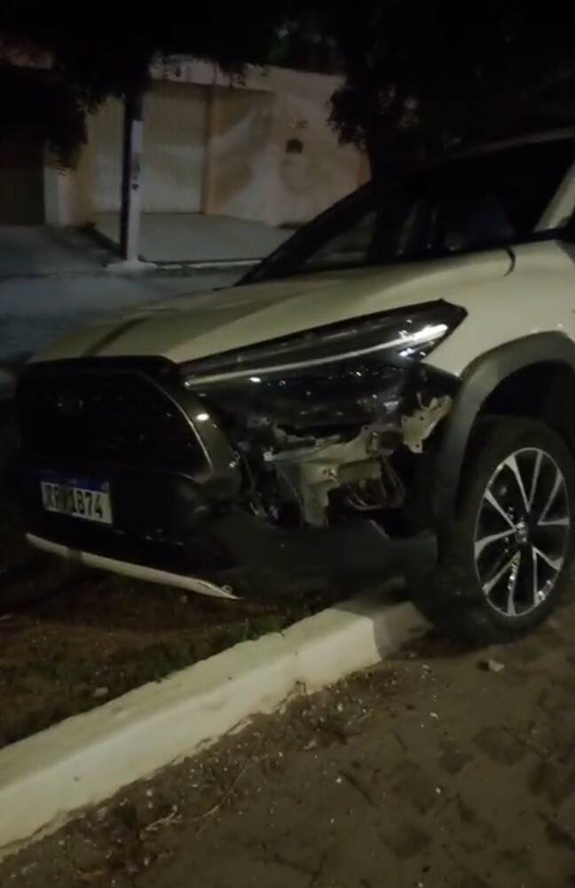O mesmo motociclista avistou uma guarnição da PM e relatou o caso, dando início a intensa perseguição. Foi dada voz de parada, a mulher desobedeceu, e só parou após colidir o carro contra o meio-fio e um poste.